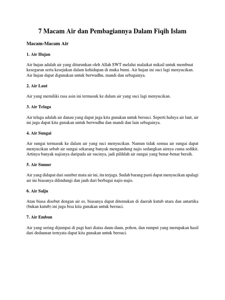 Jenis Jenis Air Dalam Islam