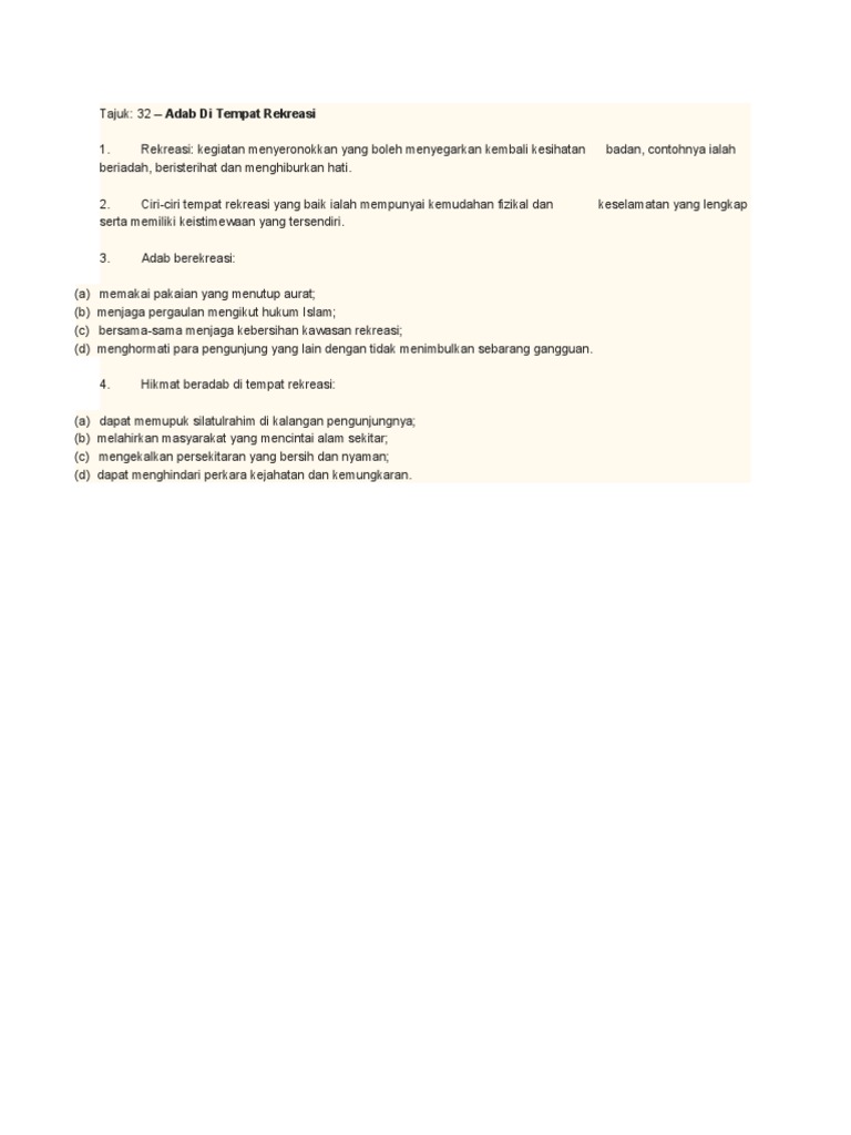 Adab Di Tempat Rekreasi Lessons Tes Teach