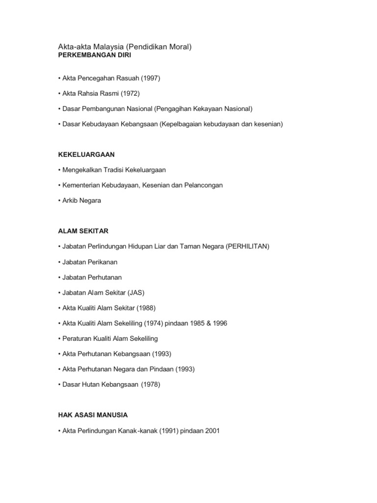 Kandungan Akta Perlindungan Kanak Kanak 1991 Pindaan 2001