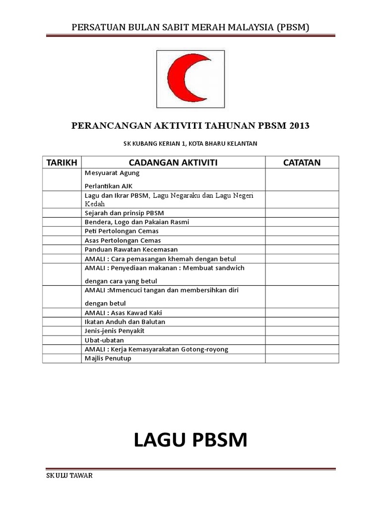Perancangan Tahunan Aktiviti Unit Beruniform Sekolah Rendah 2013