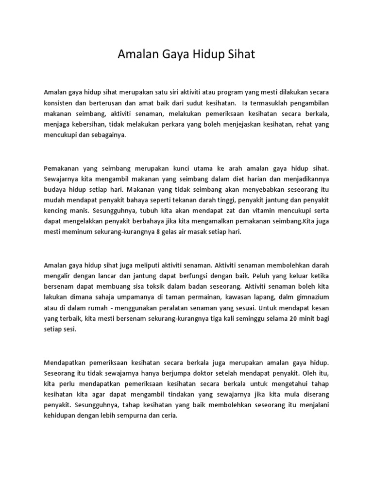 Contoh Karangan Ulasan Amalan Gaya Hidup Sihat Tahun 5