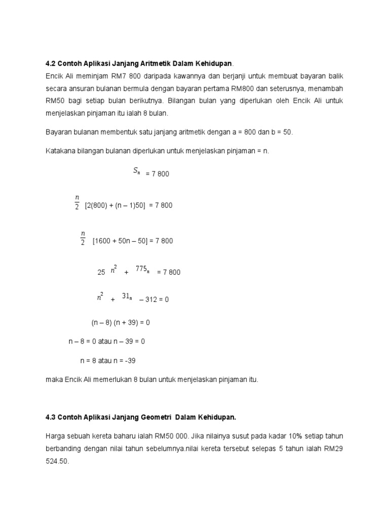 253185941 4 Docx 4 2 Contoh Aplikasi Janjang Aritmetik Dalam Kehidupan Encik Ali Meminjam Rm7 800 Daripada Kawannya Dan Berjanji Untuk Membuat Bayaran Course Hero
