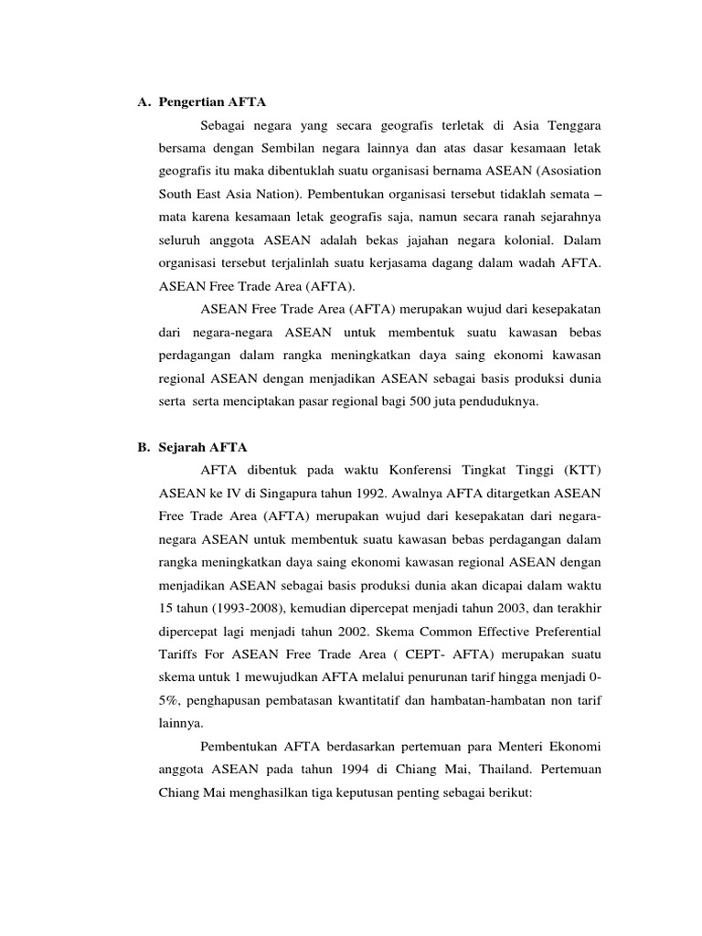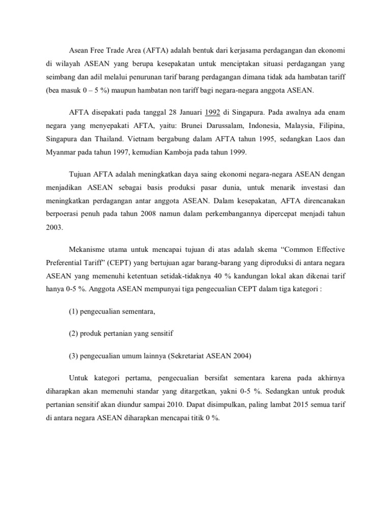 Asean Free Trade Area Afta Yang Dicanangkan Oleh Negara Negara Asean Sebagai Upaya