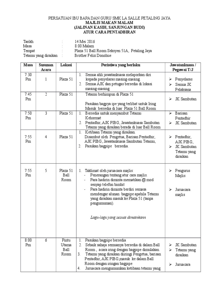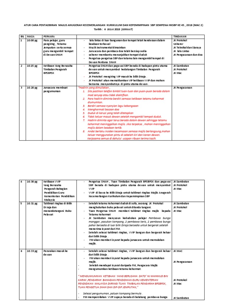 Doc Protokol Tatacara Penganjuran Majlis Rasmi Julia Ng Academia Edu