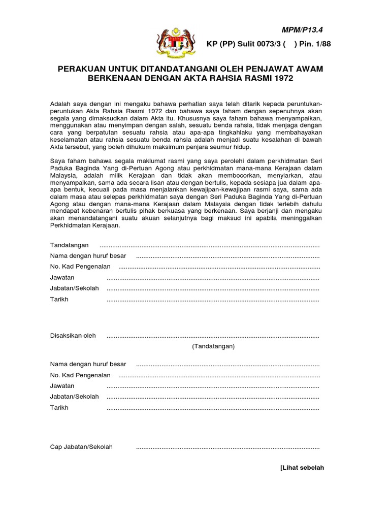 Borang Akta Rashia Rasmi 1972 Pdf Document