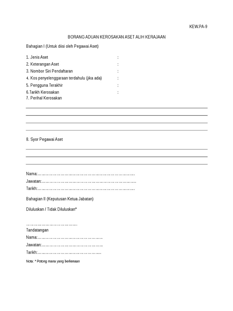 Kew Pa 9 Borang Aduan Kerosakan Aset Alih Doc