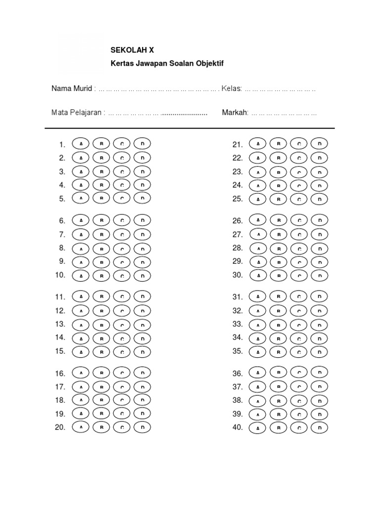 Borang Jawapan Objektif Omr Kh Pdf Document