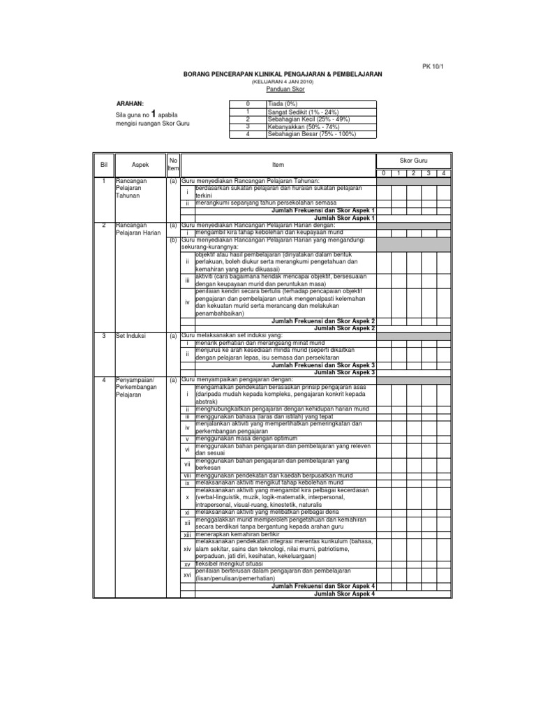 Borang Pencerapan Pengajaran Guru Format Skpm