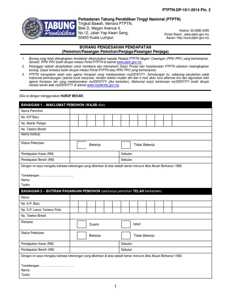 Borang Pengesahan Pendapatan Ptptn