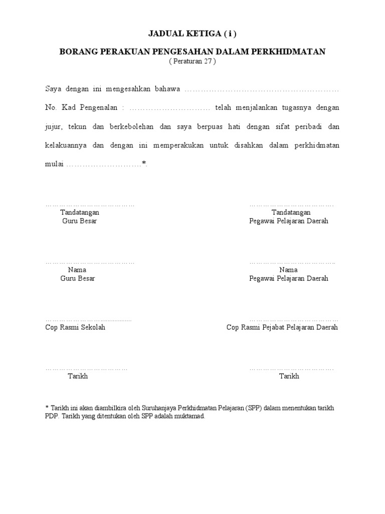 Borang Pengesahan Dalam Jawatan