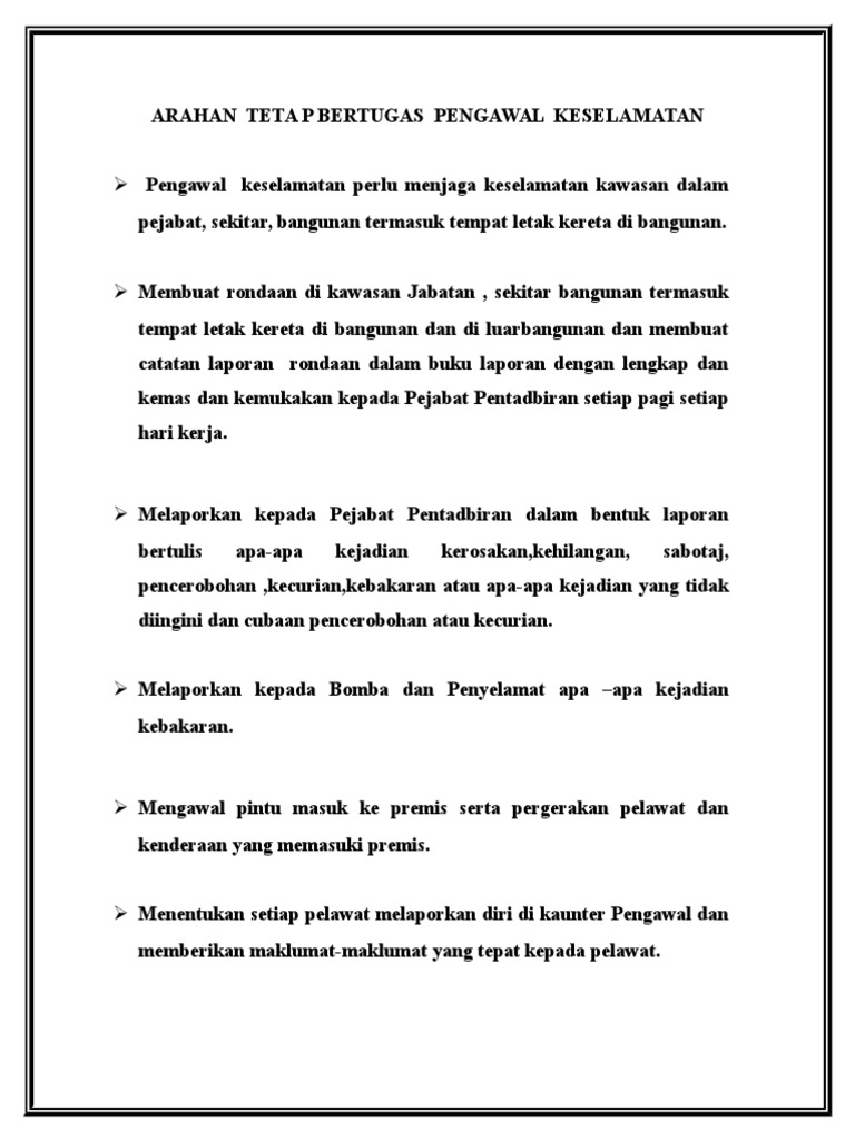Arahan Teta P Bertugas Pengawal Keselamatan Doc