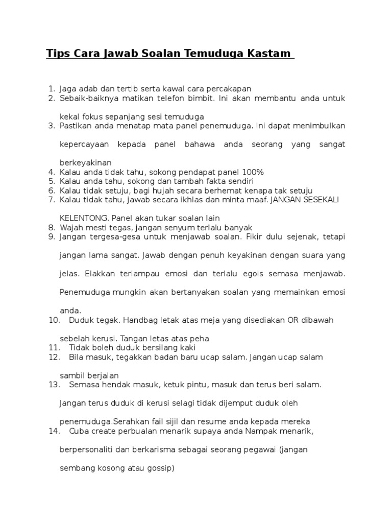 Letakkan resume di muka pertama sehelai sehelai. Cara jawab soalan temu duga dengan betul contoh soalan temu duga kerja interview kerja panduan pergi temu duga kerja tips pergi interview. Cara terbaik ialah seperti berikut. Mari semak antara soalan lazim yang akan ditanya ketika temuduga serta cara menjawab secara profesional.