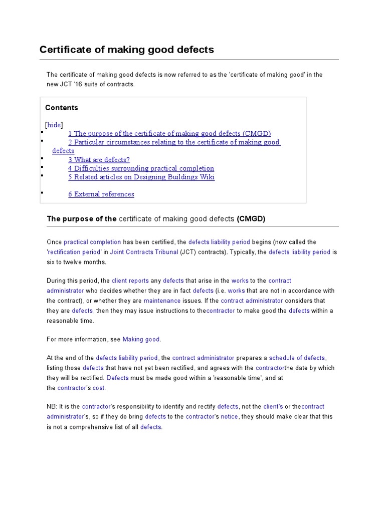 Certificate Of Making Good Defects Civil Law Legal System Business Law