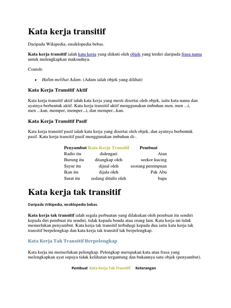 Kata Kerja Transitif Dan Kata Kerja Tak Transitif