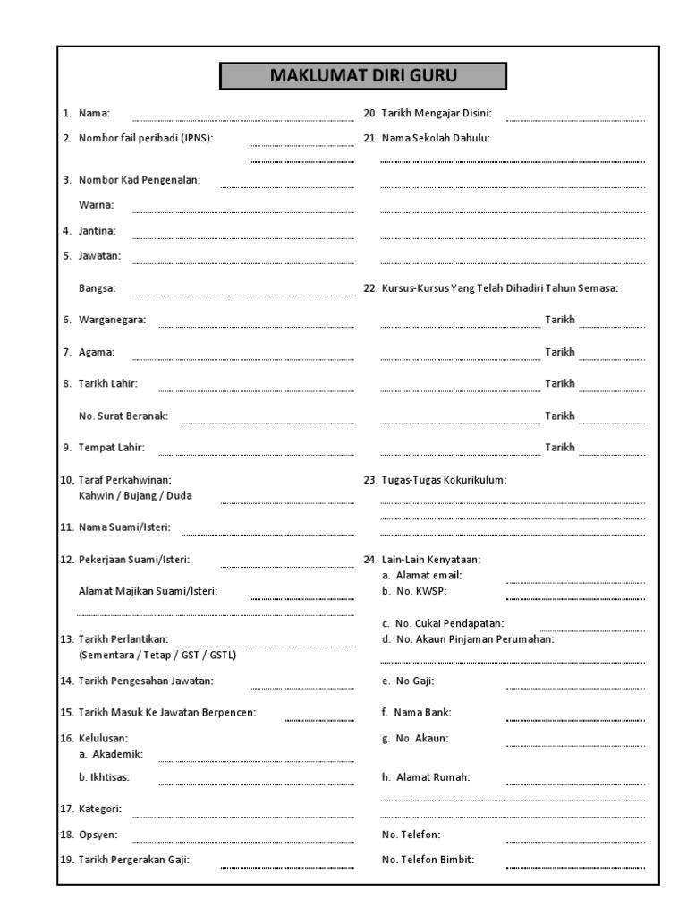 Contoh Borang Maklumat Peribadi Guru