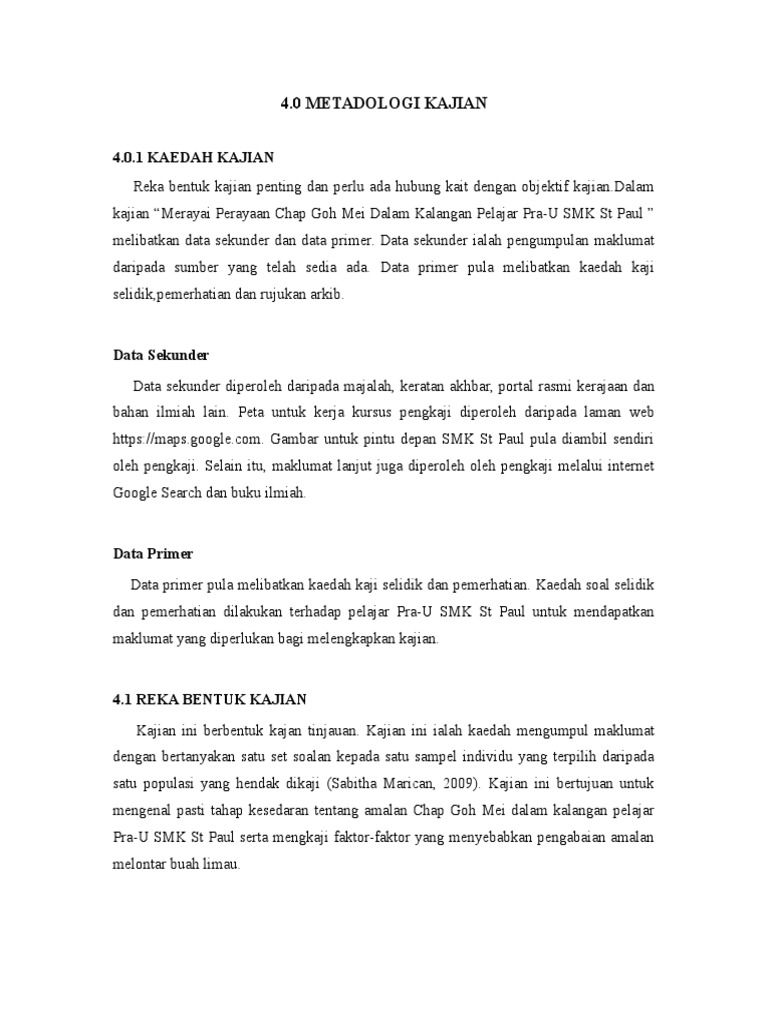 Persampelan Docx 4 0 Metodologi Kajian Bahagian Ini Membincangkan Reka Bentuk Kajian Sampel Kajian Instrument Kajian Kaedah Pengumpulan Data Dan Course Hero