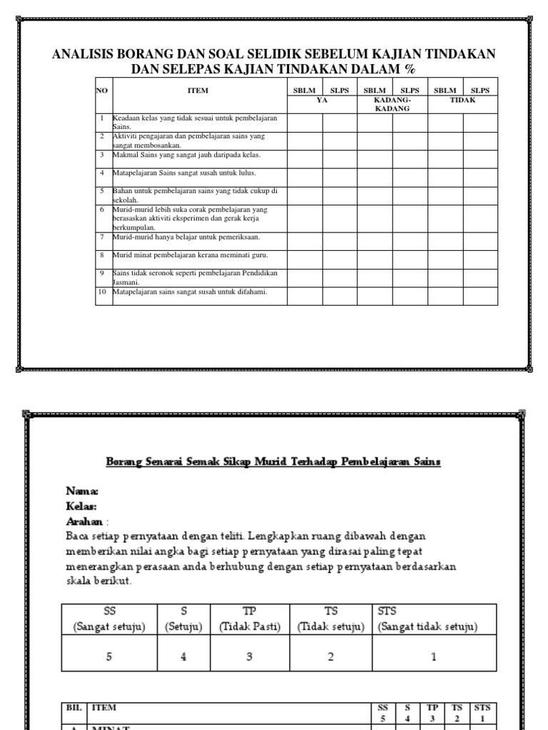 Borang Soal Selidik Kajian Tindakan Download Docx