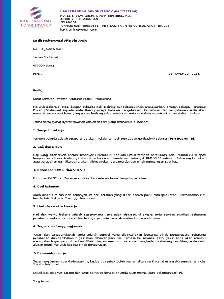 Contoh Surat Tawaran Kerja Qomartech Engineering Lokman Toolib Academia Edu