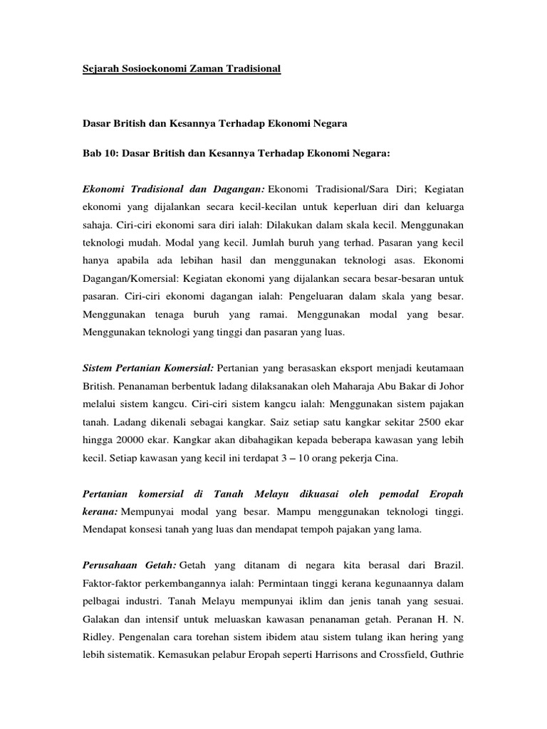 Dasar British Dan Kesan Kepada Ekonomi Sejarah Bab 10