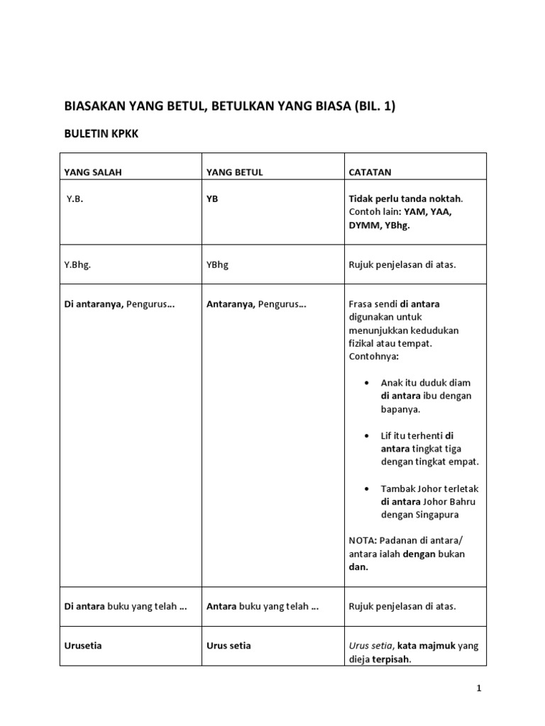 Biasakan Yang Betul Betulkan Yang Biasa Bil 1 Ipptar