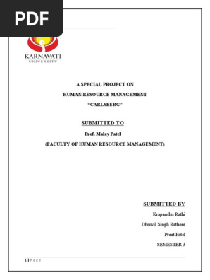 Submitted To A Special Project On Human Resource Management Carlsberg Human Resource Management Human Resources