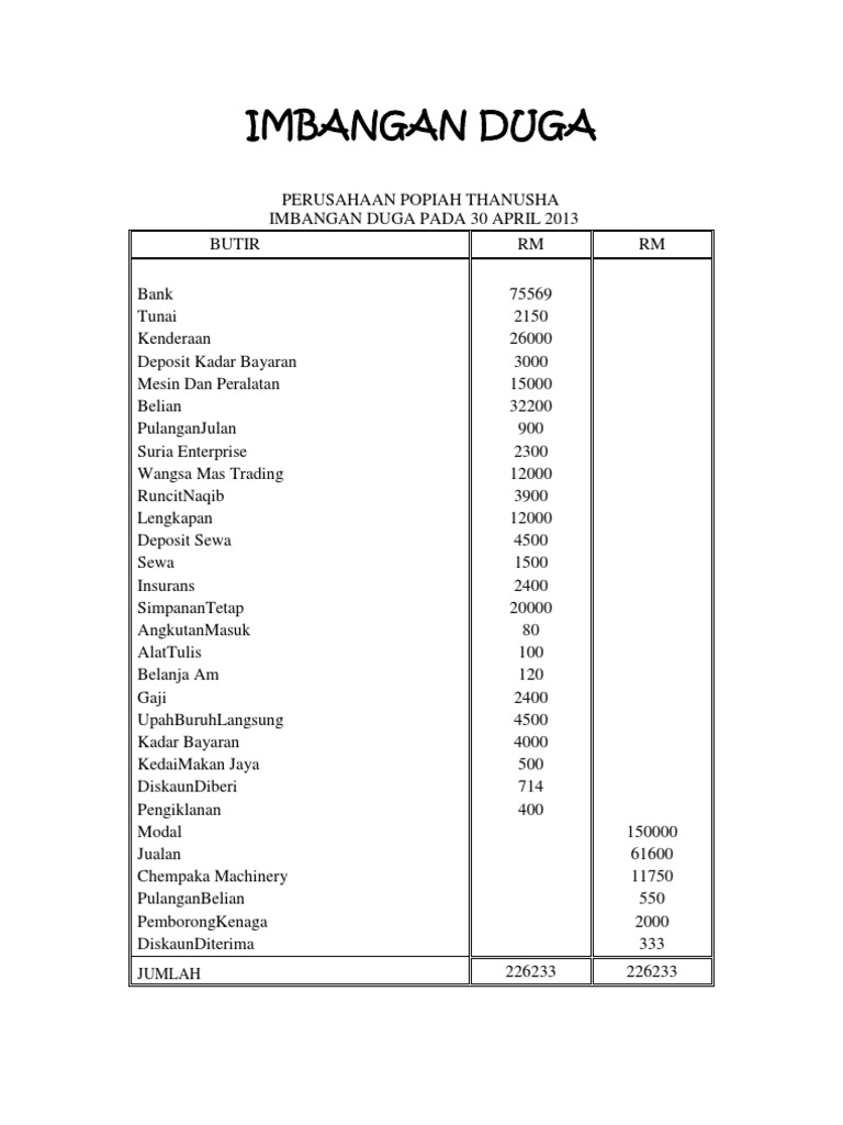 Contoh Soalan Akaun Imbangan Duga I Soalan