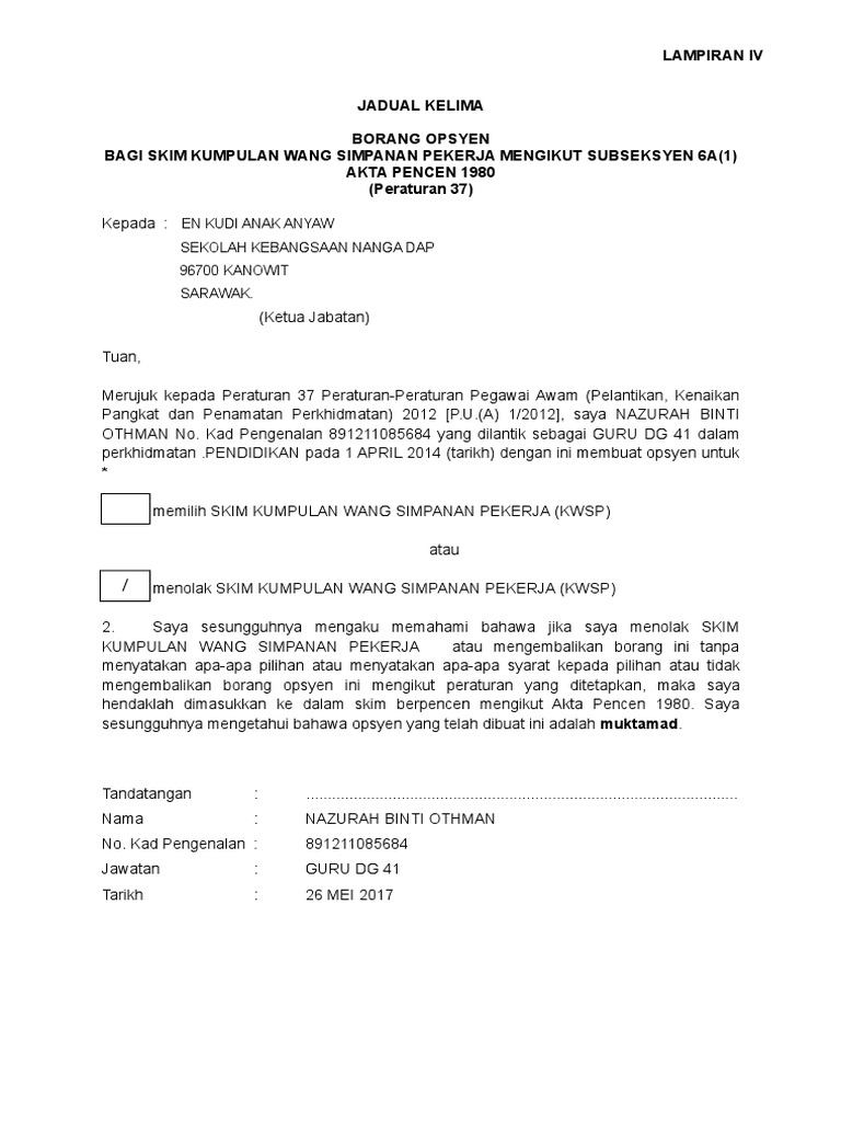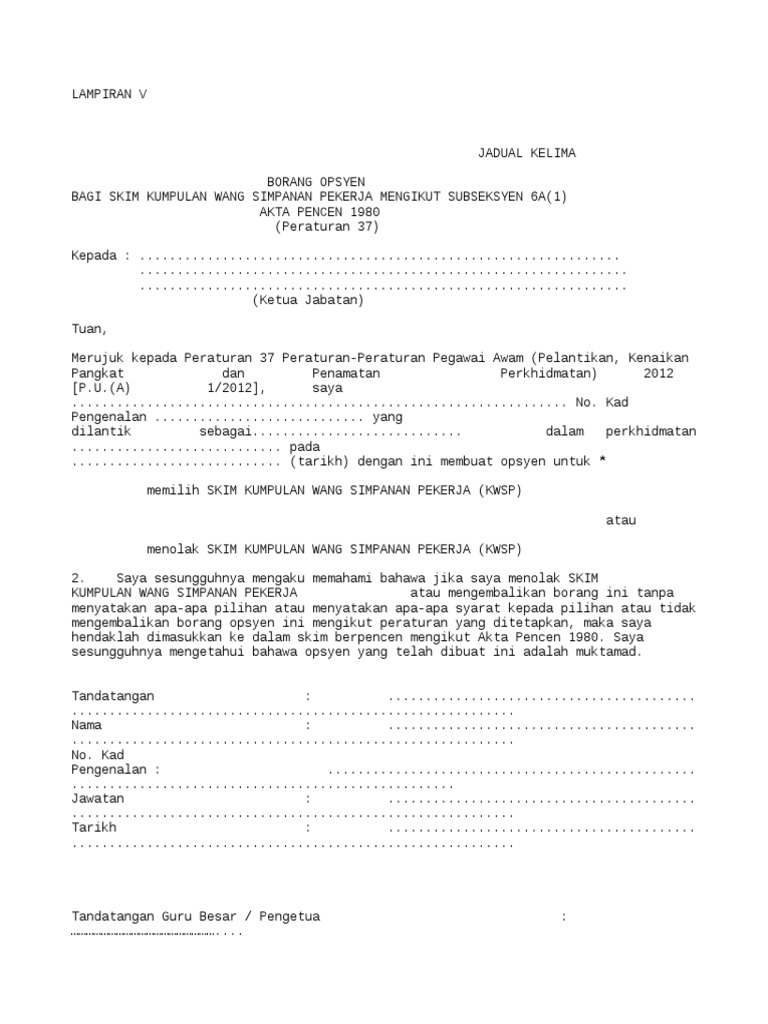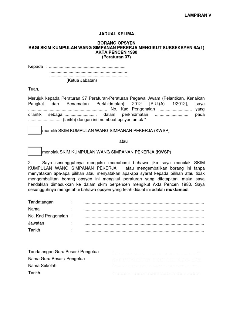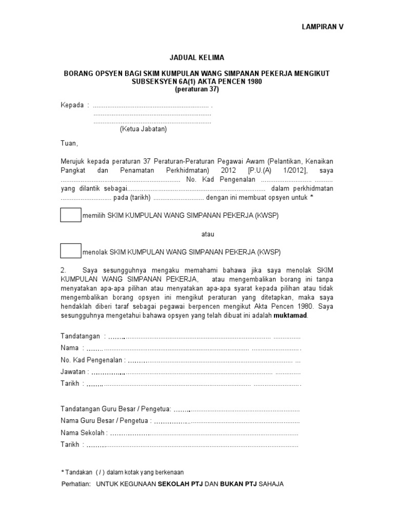 Borang Opsyen Kwsp Jadual Kelima