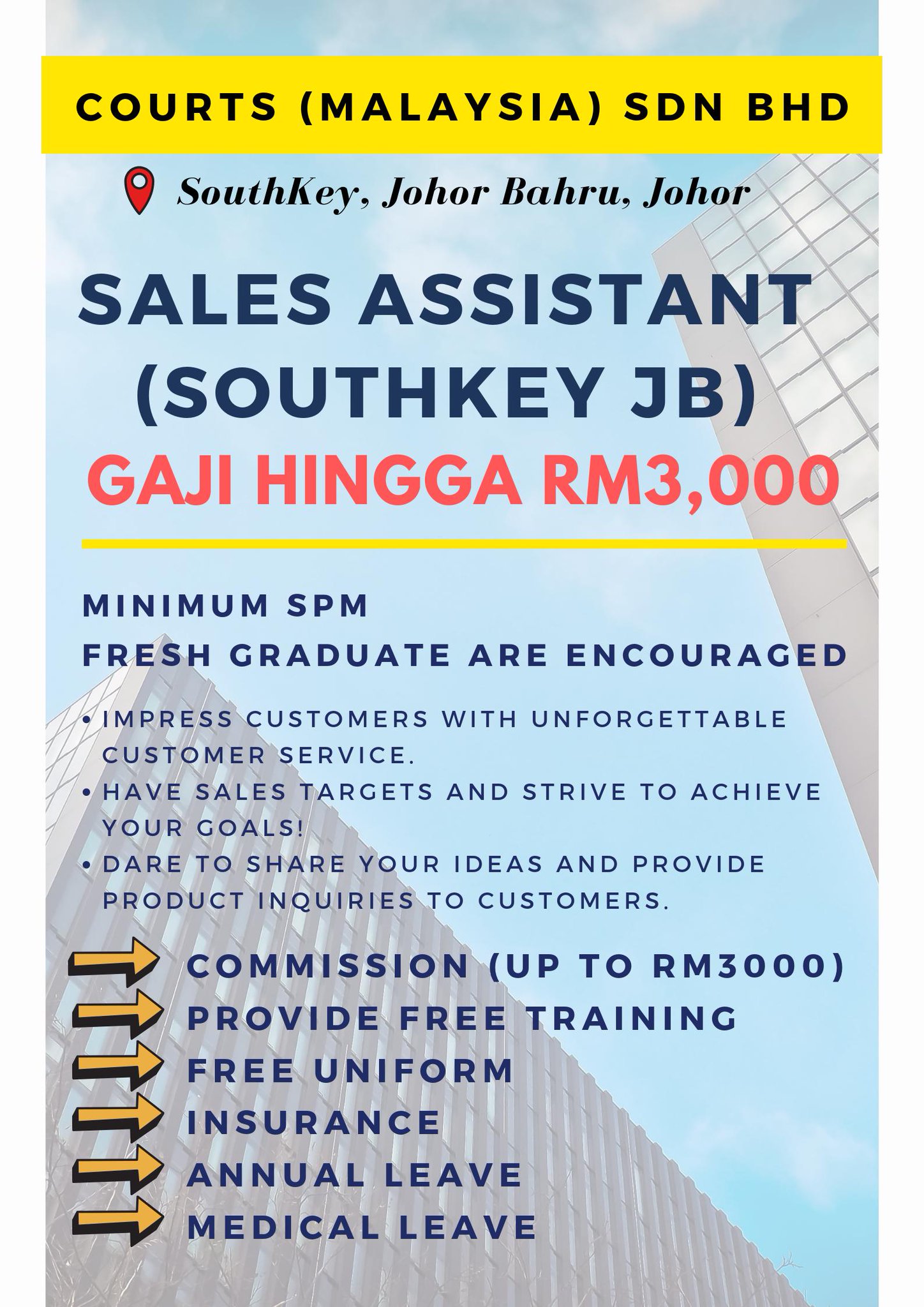 Maukerja Pa Twitter Hot Latest Vacancy Sales Assistant Southkey Jb Salary Upto Rm3 000 Minimum Spm Fresh Graduate Is Welcome To Apply High Commission Up To Rm3 000 Provide Free Training Express Apply