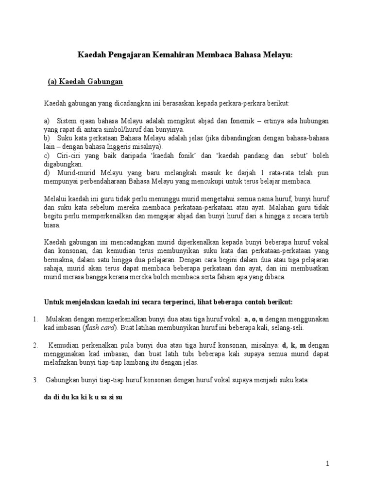 Kaedah Pengajaran Kemahiran Membaca Bahasa Melayu