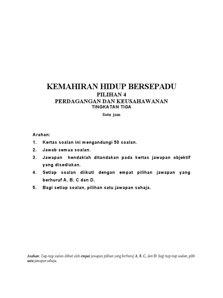 Kemahiran Hidup Bersepadu Pilihan 1 2 3 4