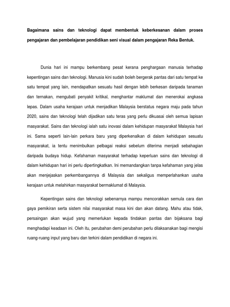 Karangan Kepentingan Sains Dan Teknologi Kepada Manusia