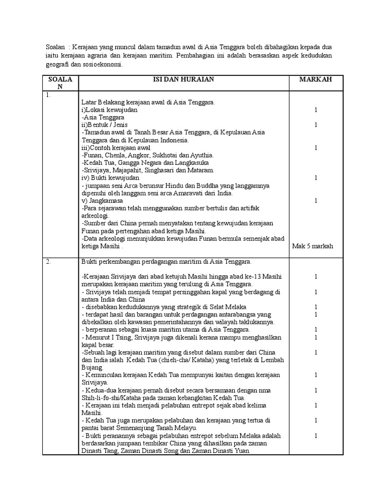 Contoh Jawapan Sejarah Kertas 3 Kerajaan Agraria Dan Maritim Hallow Keep Arts