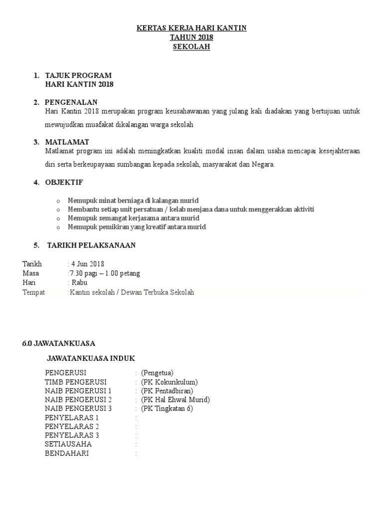 Contoh Kertas Kerja Hari Kantin Kerja Bank Terbaru