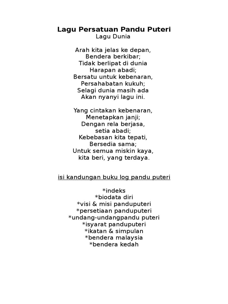 Lagu Persatuan Pandu Puteri Dengan Lirik Lagu Dunia Youtube