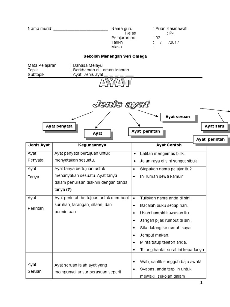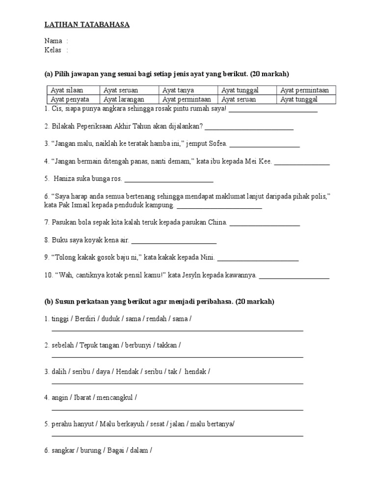 Latihan Tatabahasa Jenis Ayat Dan Membina Ayat Tingkatan 4 Docx