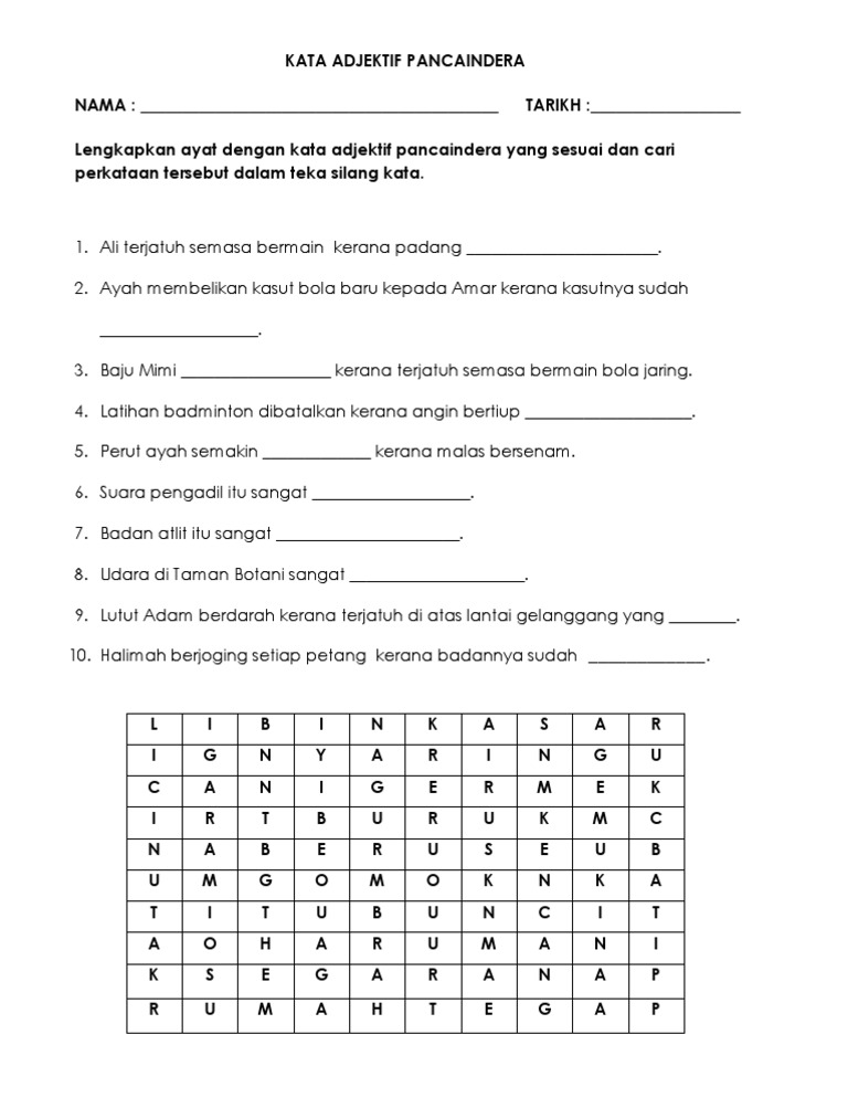 Latihan Kata Adjektif Pancaindera Tahun 3