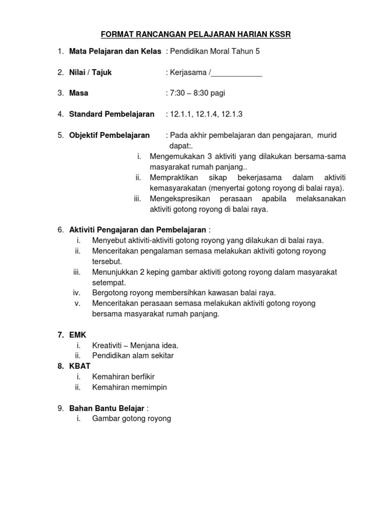 12 Unit 12 Doc Rancangan Pengajaran Harian Pendidikan Moral Tahun 6 Tarikh Masa Kelas Nilai Utama Tajuk Standard Kandungan Standard Pembelajaran Course Hero