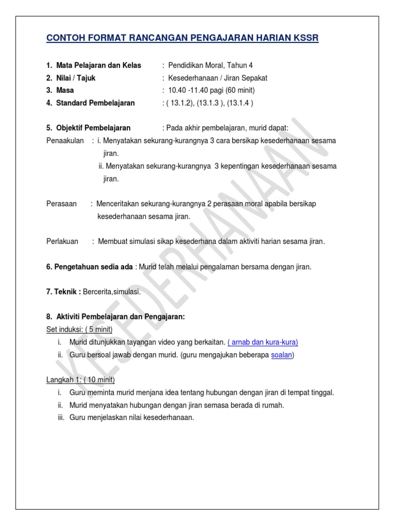Format Rph P Moral Kesederhanaan