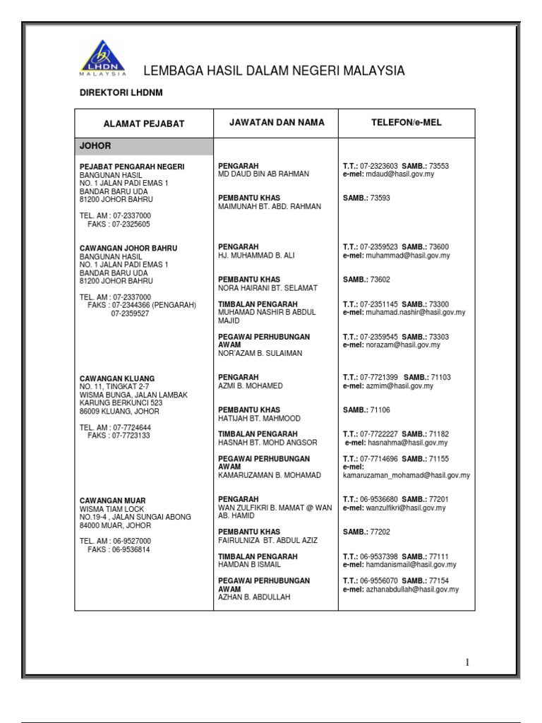 Alamat Dan Nombor Telefon Cawangan Lhdn Negeri Johor Layanlah Berita Terkini Tips Berguna Maklumat