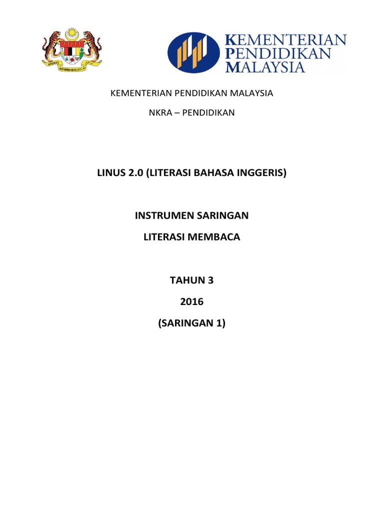 Instrumen Linus 2 0 Saringan 2 Bagi Bm Mt Dan Bi Tahun 1 Hingga Tahun 3 Pendidikan Abad Ke 21