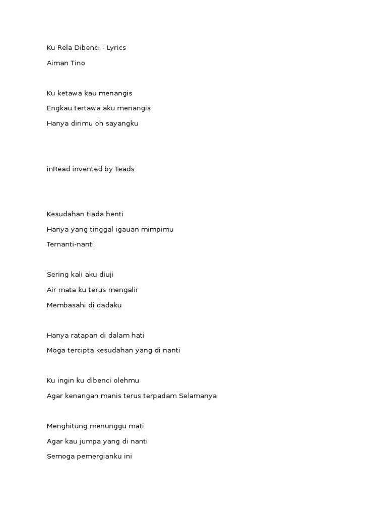 Aiman Tino Ku Rela Dibenci Lirik Youtube