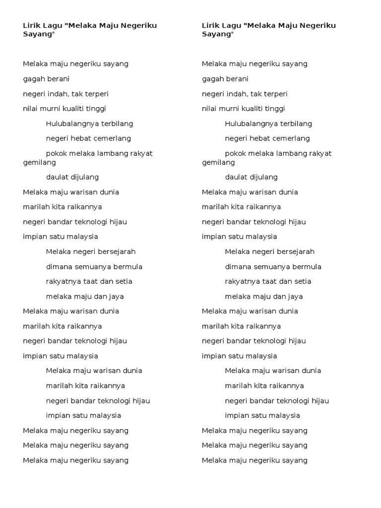 Lirik Lagu Melaka Maju Negeriku Sayang Docx Google Drive