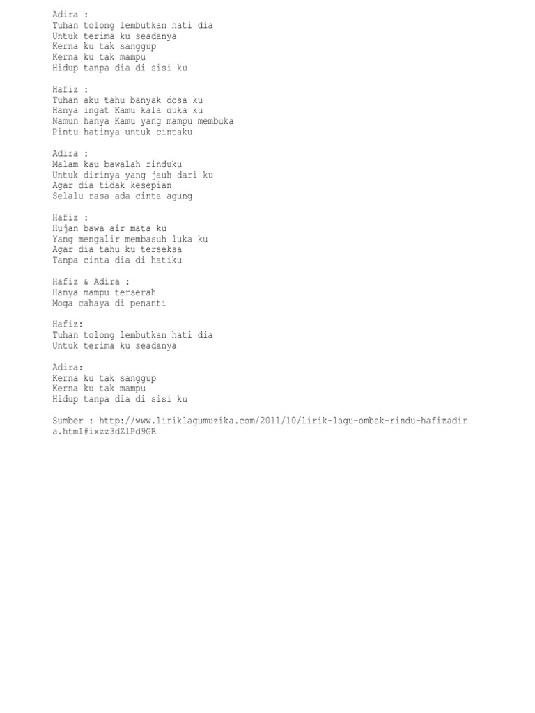 Lirik Lagu Ombak Rindu Hafiz Adira Adira Hafizadira Html Ixzz1ic89wdsm