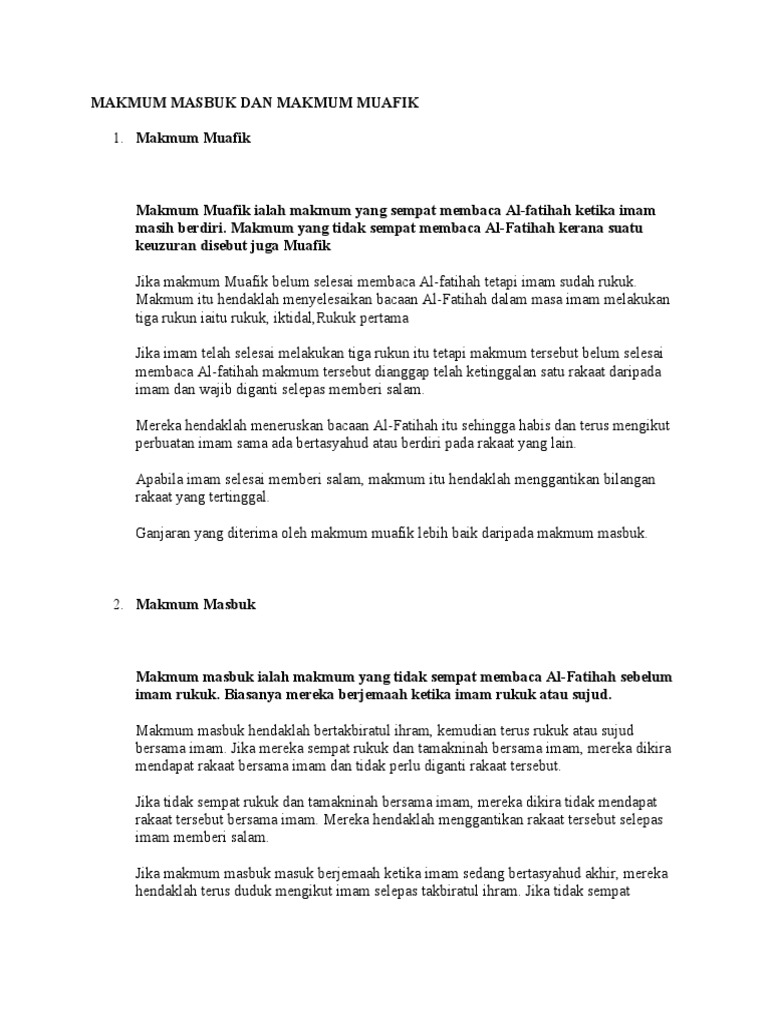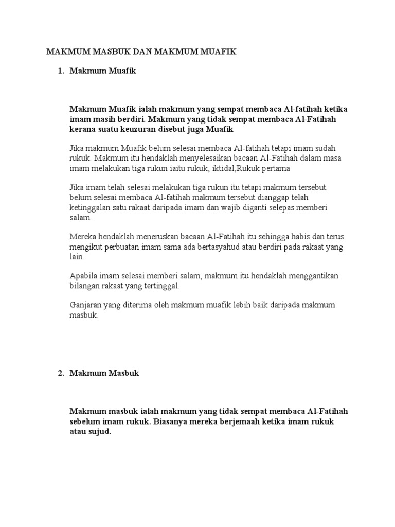 Beza Makmum Masbuk Dan Muafik Video Kuliah Agama Facebook