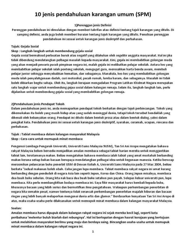 10 Jenis Pendahuluan Karangan Umum Docx