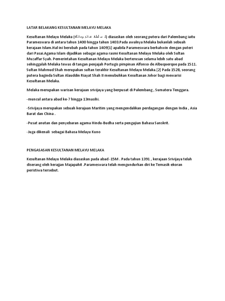 Doc Latar Belakang Sejarah Melaka Rikiko Xiangling Academia Edu