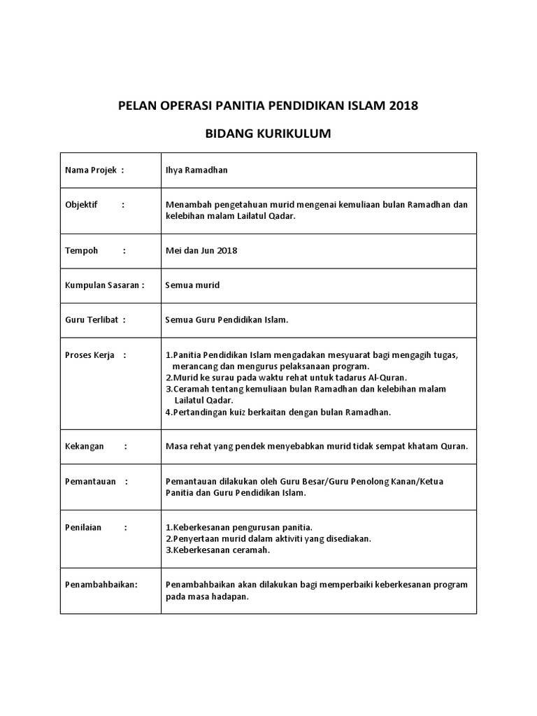 Pelan Operasi Panitia Pendidikan Islam 2018 Docx