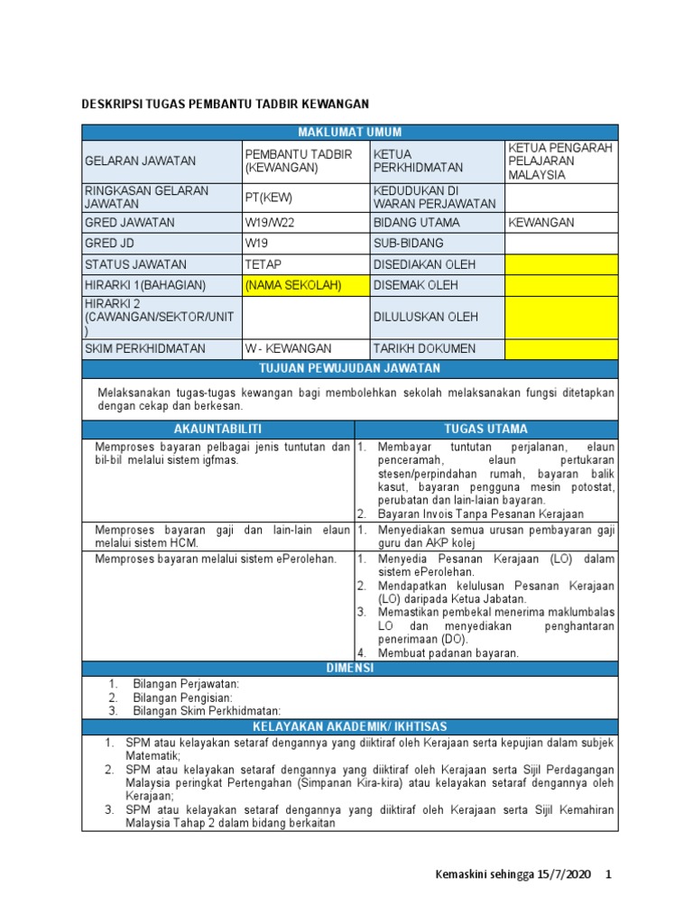 Tugas Pembantu Tadbir Kewangan Gred W19 Jawatan Kosong