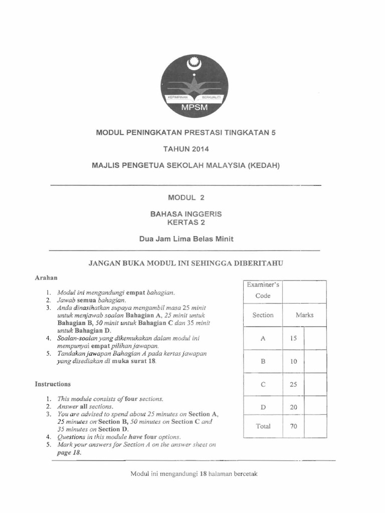 Mpsm Kelantan Trial Exam Paper English 1119 Paper 2 Part 1