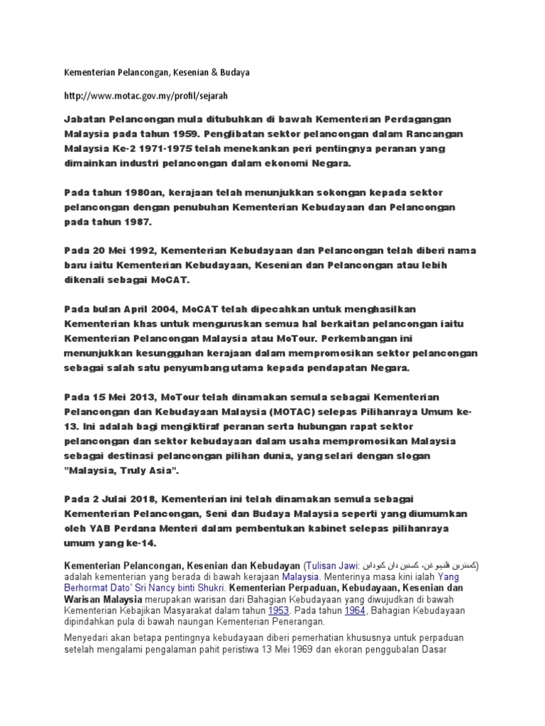Kementerian Pelancongan Kesenian Dan Kebudayaan Malaysia Wikipedia Bahasa Melayu Ensiklopedia Bebas